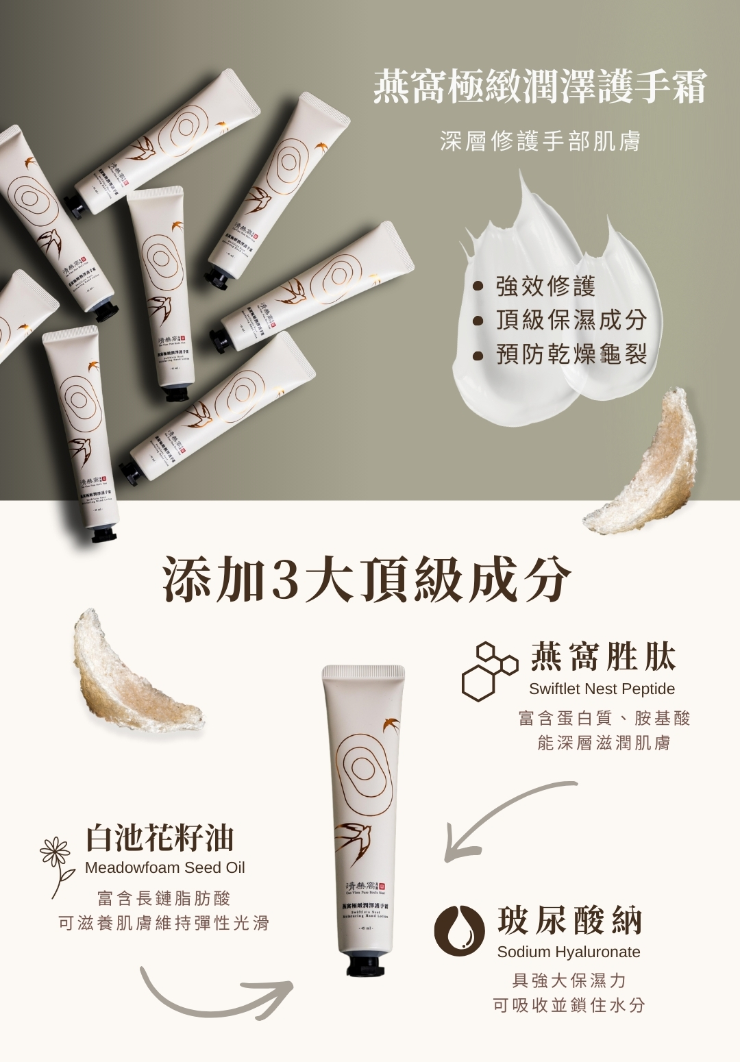 👉 是的,燕窩精華搭配玻尿酸與植物萃取油脂,能夠強化肌膚屏障,減少水分流失,防止乾燥龜裂問題,適合寒冷季節或頻繁洗手的人群。